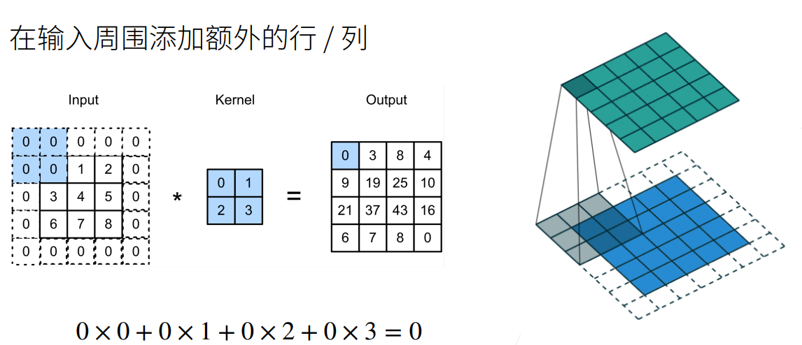 但是如果输入没有那么大,或者核不够小,那么就无法进行较多层的计算。 所以可以人为地在输入的周围填充上一些元素(一般是0)来扩大我们的输入。