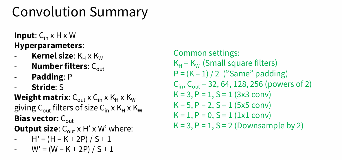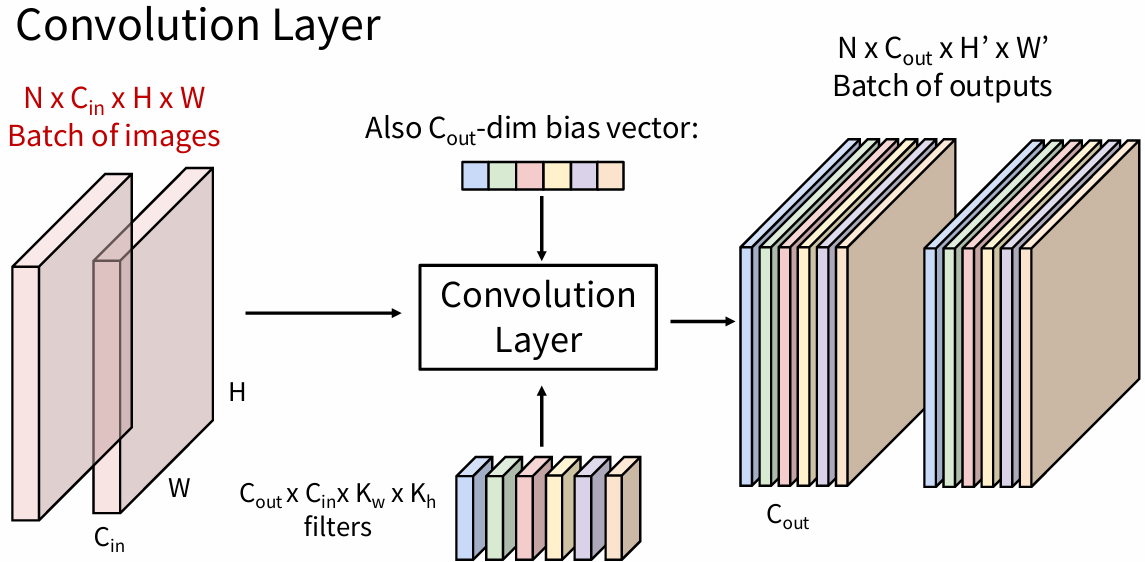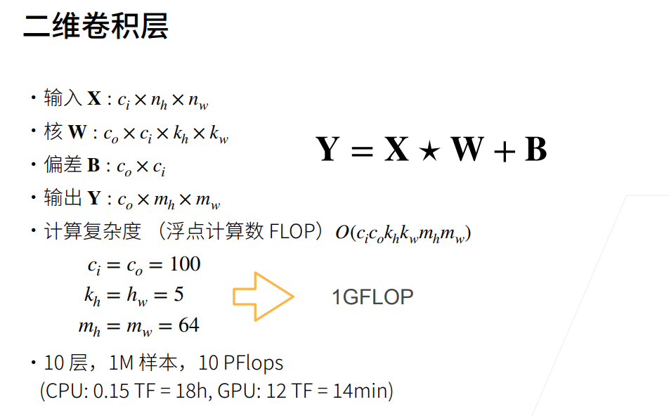 - 卷积层可学习的参数就是 $c_o\times c_i\times k_h\times k_w$ 。