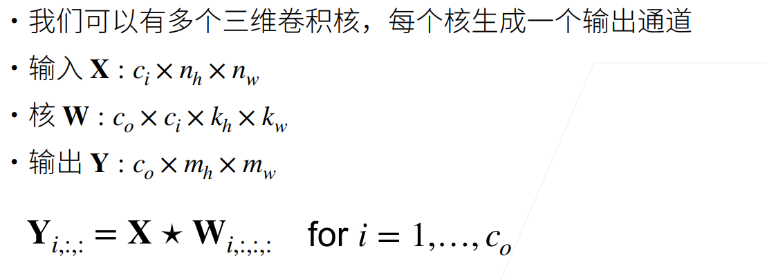 - $c_o$ 个输出通道对应 $c_o$ 个不同的三维卷积核。