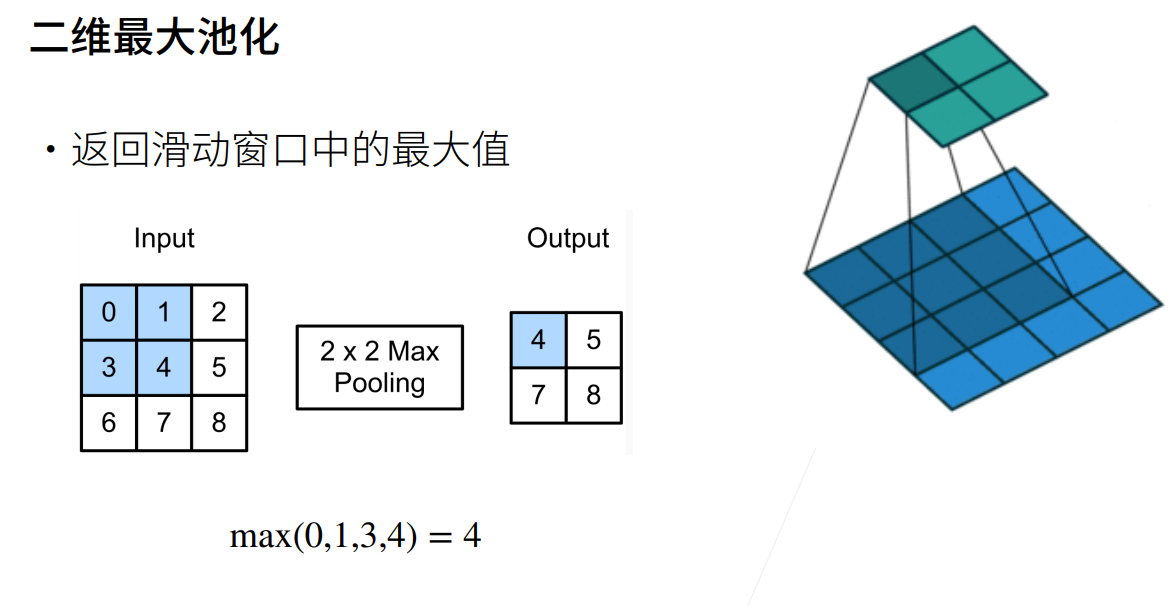 卷积对于位置信息是相当敏感的,池化层可以用于缓解卷积的敏感性。也可以解释为需要一定程度的平移不变性。一般我们通过最大池化层或者平均池化层来进行池化。