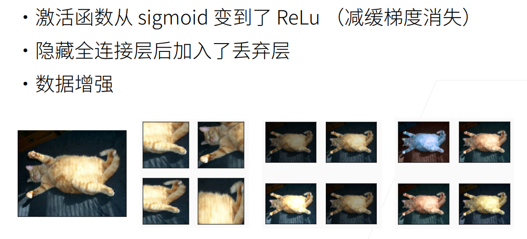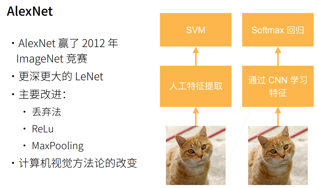 AlexNet的诞生是因为更多更丰富更优质的图像数据的出现ImageNet(2010)并且AlexNet对传统图像识别的方法进行了更多改进。