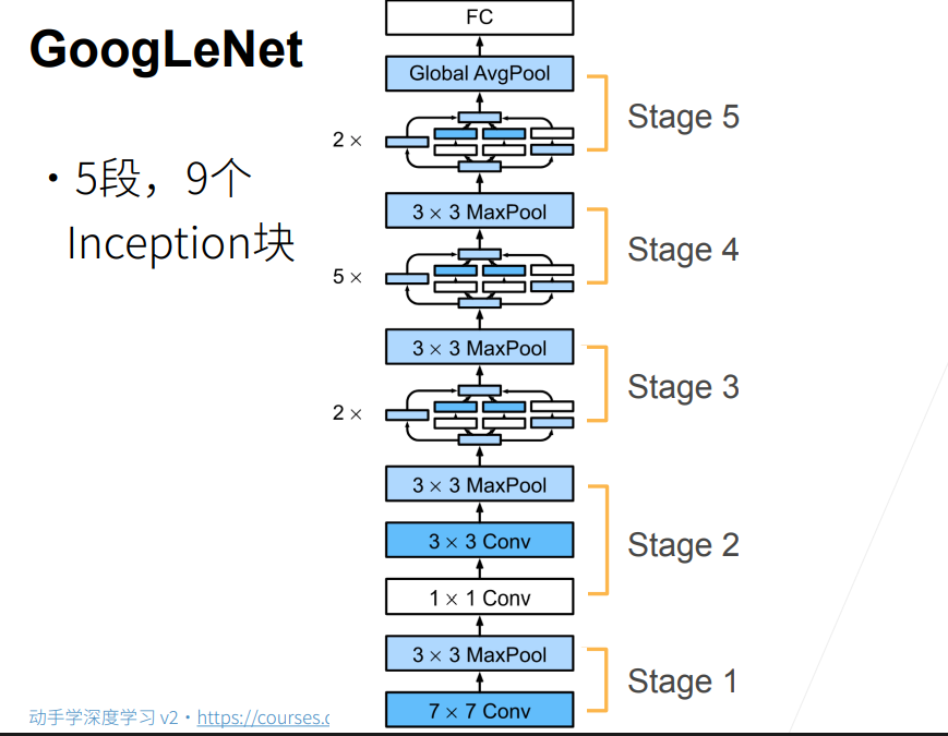 后面还有更新了Inception块的版本Inception-V3,基本也是对Inception块内的卷积核进行大小或者排布上的调整。还有使用其他方法改进的,后续会提到。