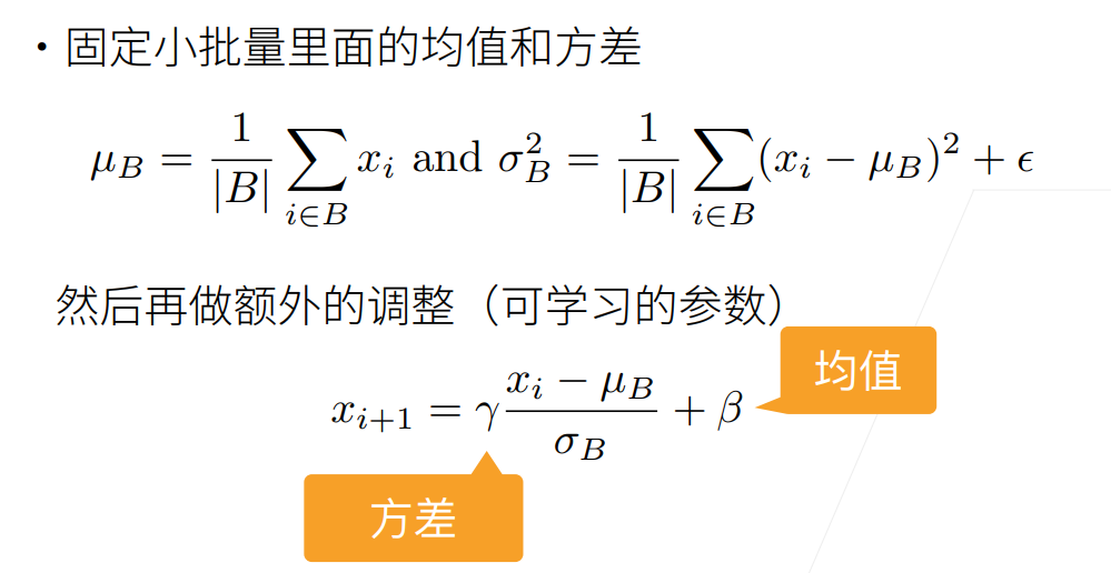 对小批量的标准化就是进行稳定的方法,但是为了避免限制学习,再进行了额外的调整。