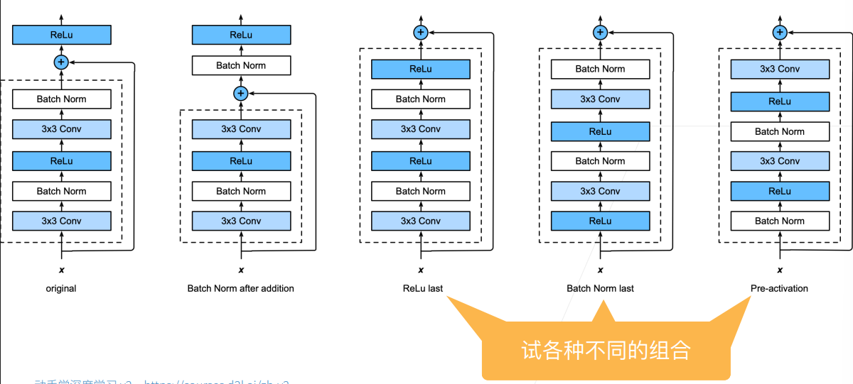 残差块具体的实现有很多种: