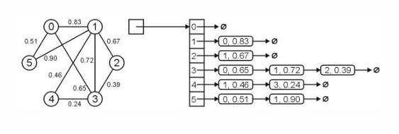 存储了该顶点邻居的标识符(顶点编号),边的权重和指向下个顶点的指针; 但是更好的实现方法是将边和邻居的编号成对(边-点)存储:
