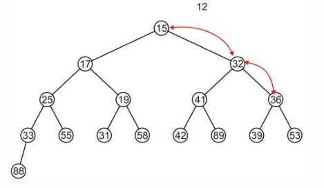 我们使用最新加入的节点(36)替换12所处的根节点,弹出12。
