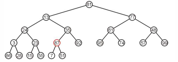 从第一个非叶子节点87开始,这个子树已经是最大堆了。