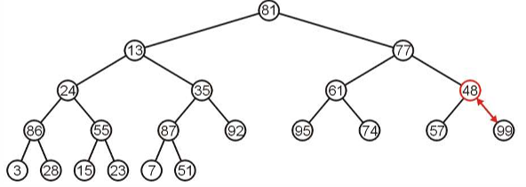 - 这个交换过程可能需要递归进行,直到该节点下滤到正确的位置 。